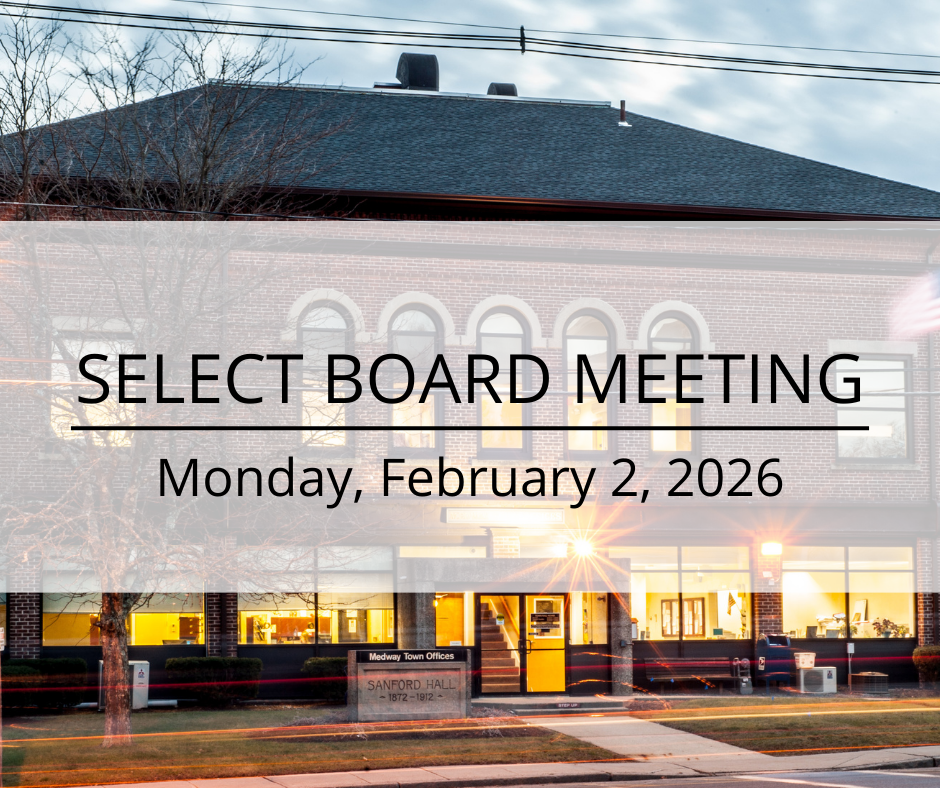 The next meeting of the Select Board is tonight, Monday, February 2, 2026 at 7:00 pm. The meeting will take place in Sanford Hall at Town Hall, 155 Village Street.